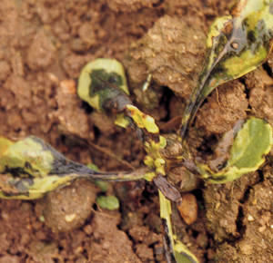 ▲Rhizoctoniaによると推測されるひび割れテンサイ