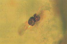 | 寄生体液採取(host-feeding)中のオンシツツヤコバチ |
